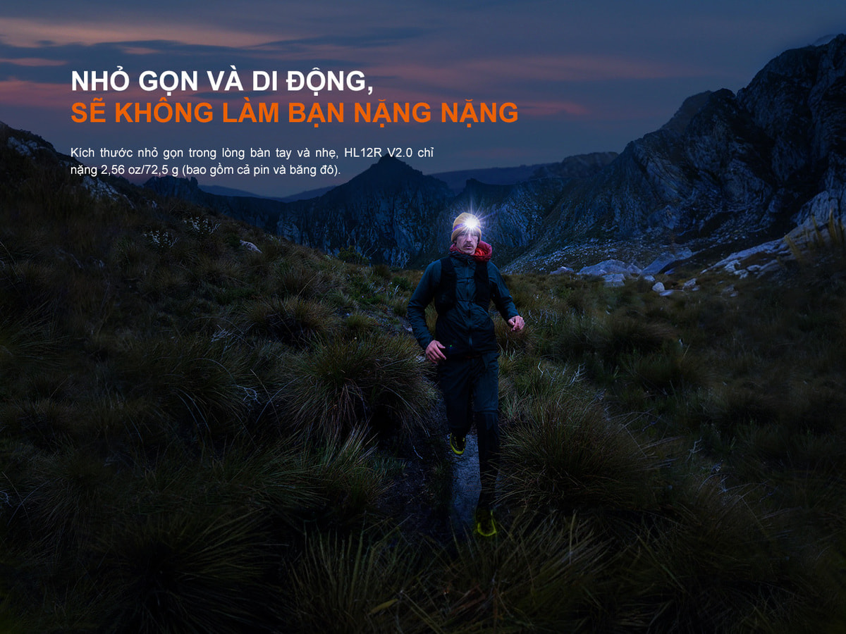 Đèn pin đội đầu Fenix HL12R V2.0 là lựa chọn lý tưởng cho những ai cần một thiết bị chiếu sáng siêu nhẹ, bền bỉ và linh hoạt trong mọi tình huống. Với trọng lượng chỉ 72,5 gram (bao gồm cả pin và dây đeo), đây là một trong những mẫu đèn nhẹ nhất của Fenix, mang lại cảm giác thoải mái tuyệt đối ngay cả khi sử dụng liên tục trong thời gian dài.