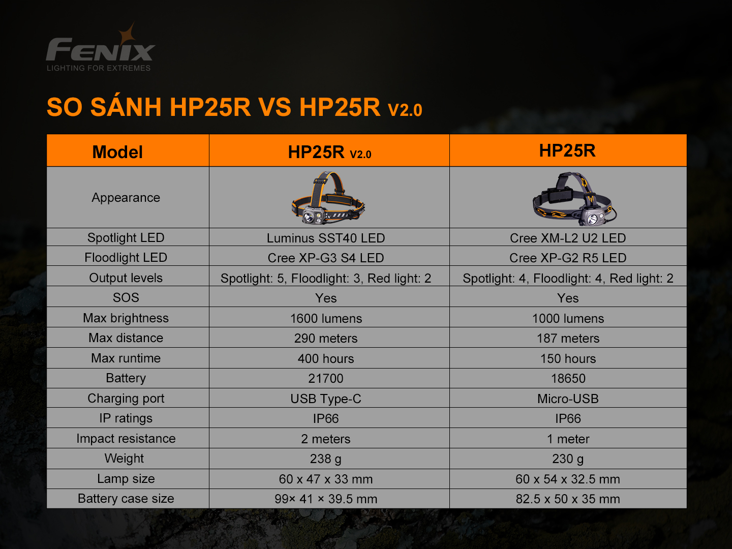 Đèn pin Fenix HP25R V2.0, bản nâng cấp cực kì đáng giá so với bản HP25R tiền nhiệm trước đó, với nhiều thay đổi lớn.