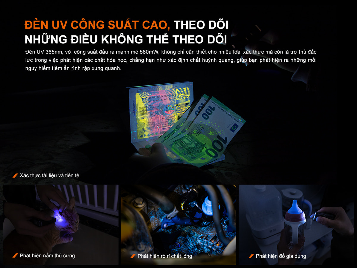 Led UV 365nm với công suất tối đa 580mW, ứng dụng trong việc phát hiện các chất hóa học, xác định huỳnh quang hoặc kiểm tra các loại giấy tờ, tiền …