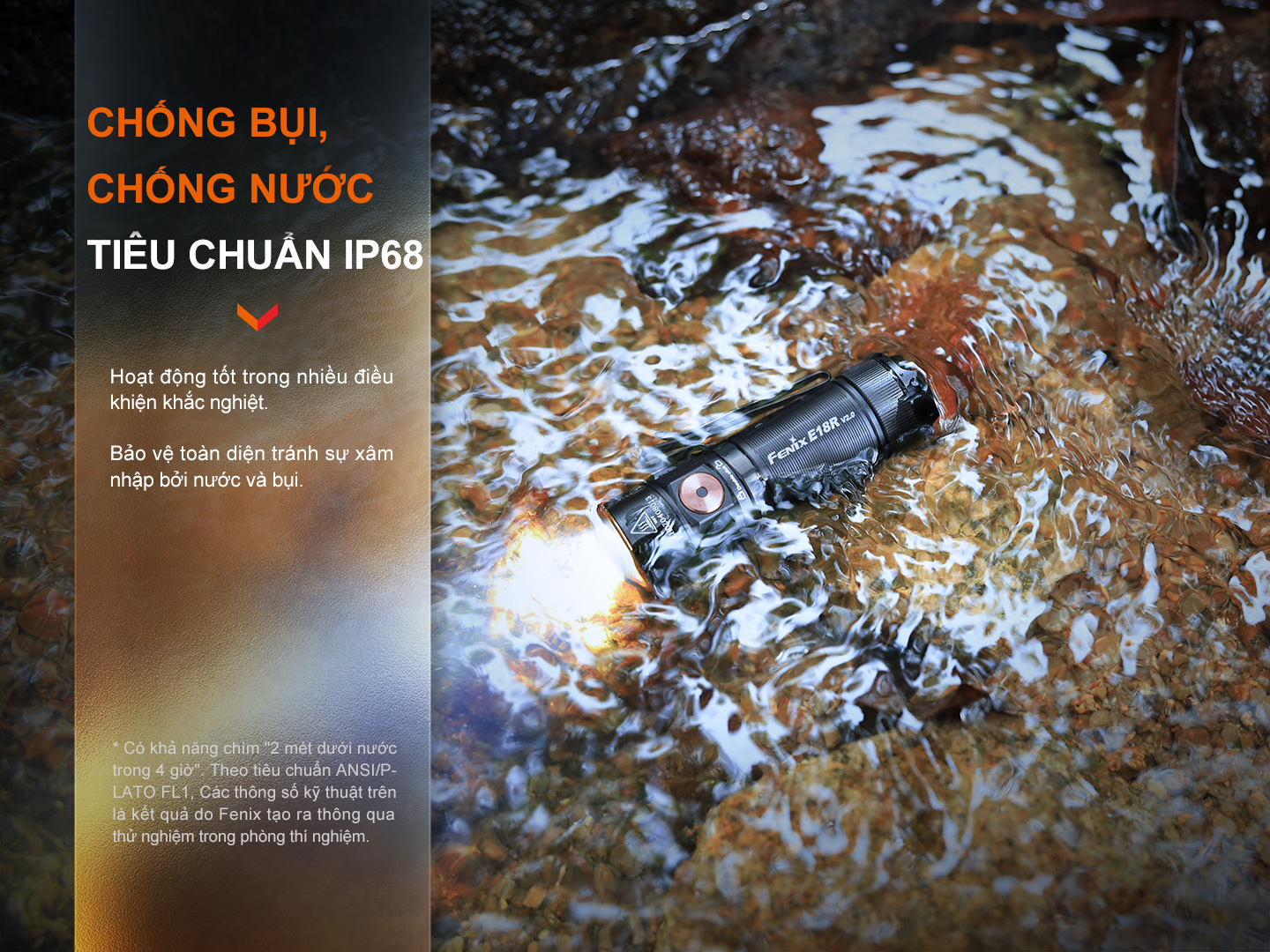 Đèn có khả năng chống nước chống bụi IP68, chịu sâu tới 2m