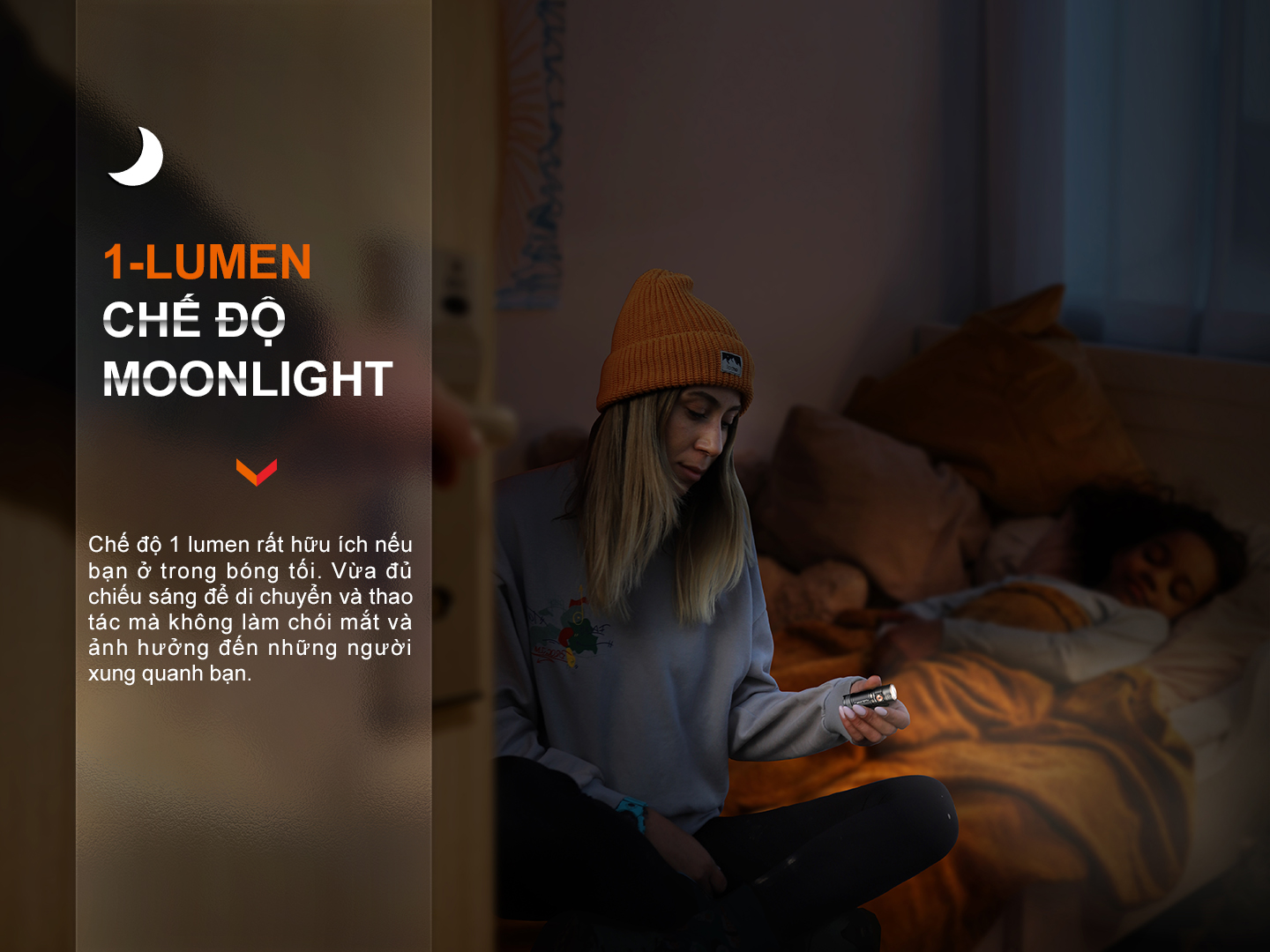 Khóa: khi đèn tắt, nhấp đúp vào công tắc trong vòng 0,5 giây để khóa đèn, đèn sẽ nhấp nháy hai lần trên Eco để báo trạng thái khóa.