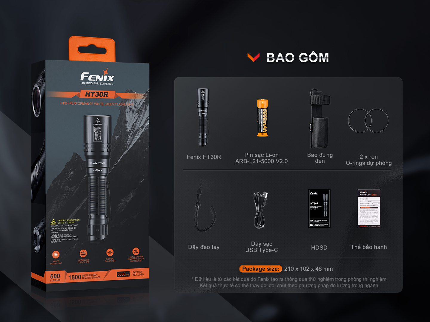 • 1 x Đèn pin Fenix HT30R.