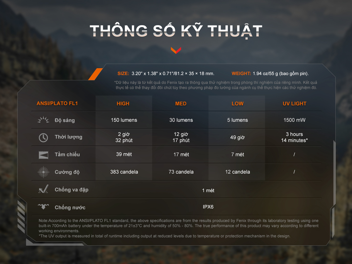 Với kích thước chỉ 69 x 29 x 16mm và trọng lượng vỏn vẹn 24g, Fenix SW05R là một trong những mẫu đèn cực kỳ nhỏ gọn và dễ dàng mang theo bên mình. Dù vậy, đèn vẫn đạt tiêu chuẩn chống nước IPX6 và có khả năng chống chịu va đập ở độ cao tối đa 1 mét, phù hợp cho những công việc ngoài trời hoặc môi trường khắc nghiệt.