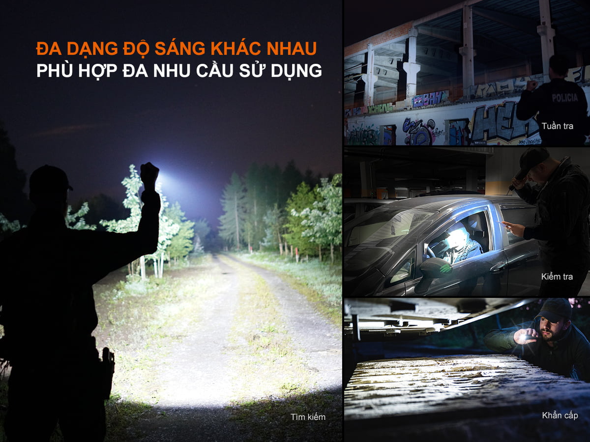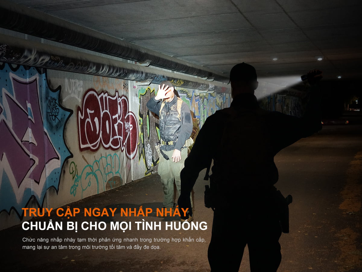 Fenix TK22R sở hữu cụm công tắc chiến thuật FLEXI SENSA mới nhất, cho phép chuyển đổi lập tức 3 chế độ Tac – Duty – Lock. Toàn bộ các mức sáng chỉ cần thao tác duy nhất bằng 1 tay.