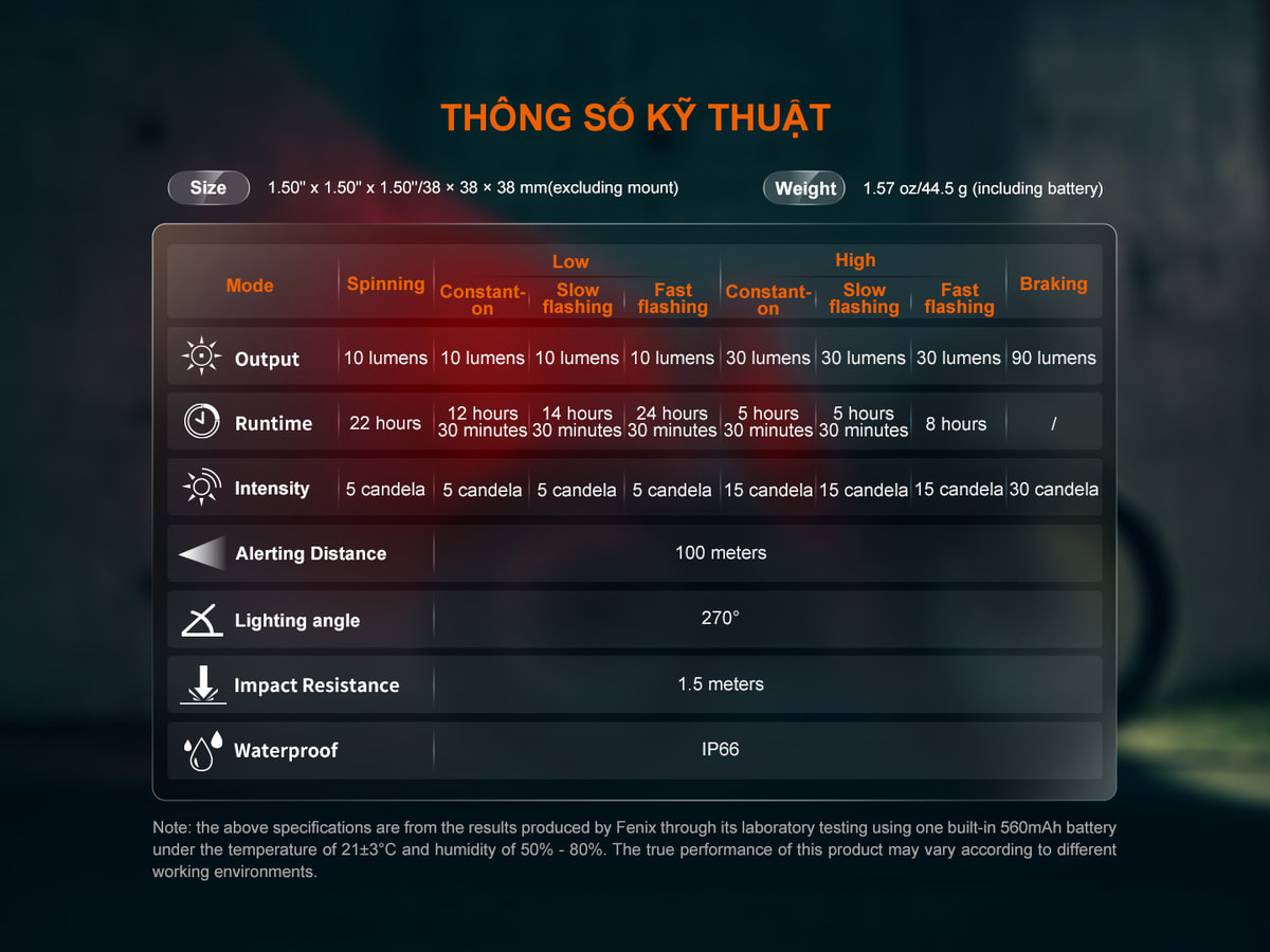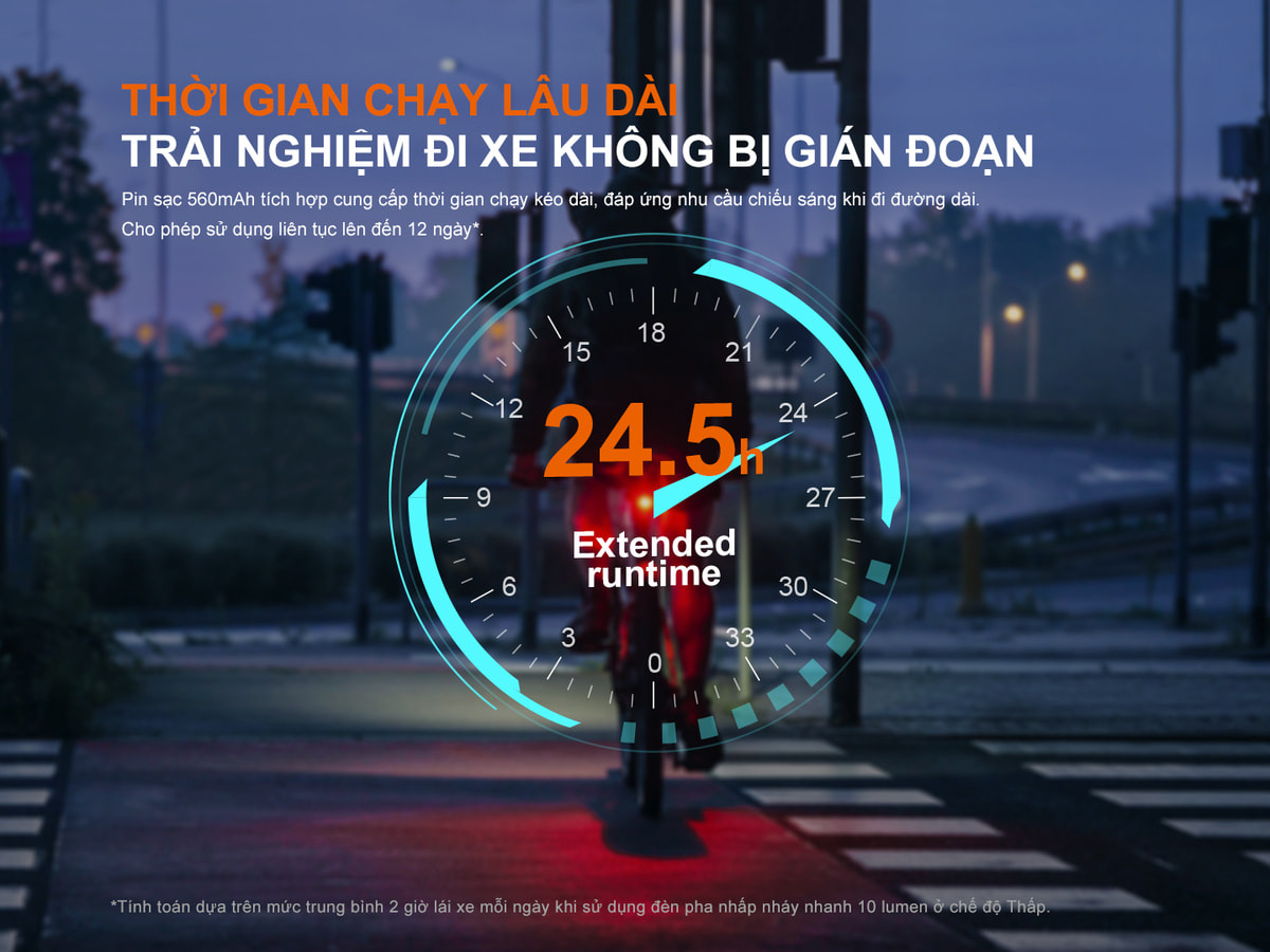 Đèn có kích thước rất nhỏ gọn với nhiều chế độ sáng, cực kì phù hợp cho người đi xe đạp để phát cảnh báo hoặc tín hiệu nhận diện khi làm việc.