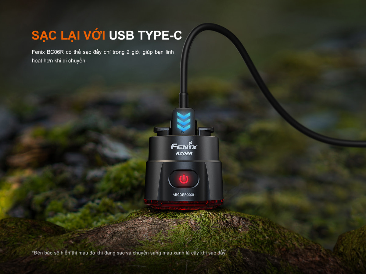 Đèn Fenix BC06R được trang bị viên pin sạc 560 mAh cho thời lượng sáng liên tục đến 24.5 giờ. Đèn có tích hợp cổng sạc Type C với cổng che cao su chống nước.