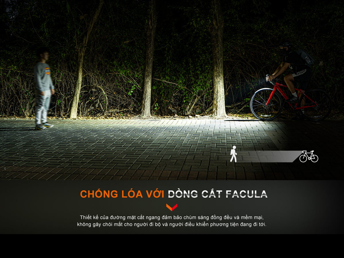 Fenix đã thiết kế thấu kính chuyên biệt dành cho BC15R, để cho ra ánh sáng với đường cắt ngang tầm người. Điều này cực kì tinh tế khi bạn sử dụng đèn chiếu sáng mà không làm chói mắt người đối diện.
